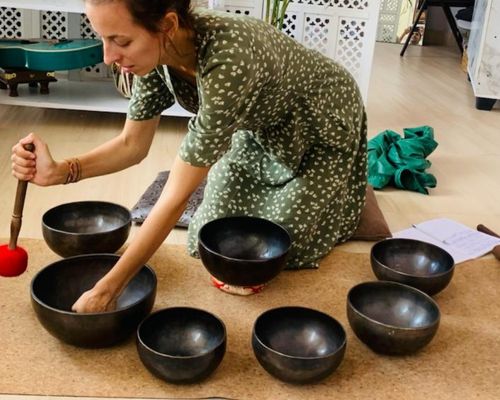 Experience vibration therapy using singing bowls to calm the mind and balance energy.